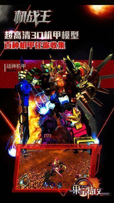 1、与果宝特攻、快乐酷宝等五大动画主角携手拯救世界,300款独特机甲设定,熟悉机甲一一登场,并肩作战。