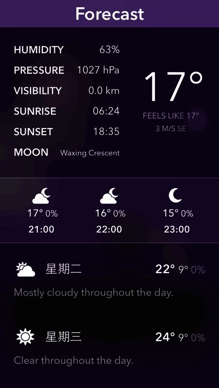 它是极简主义天气应用,采用超精确的黑暗天空天气数据,天气地下数据源可作为升级选项。