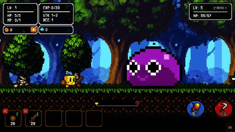 1、移动:点击前进按钮角色会向前移动1格,如果不松开,角色会持续向前走直到碰到怪物为止;