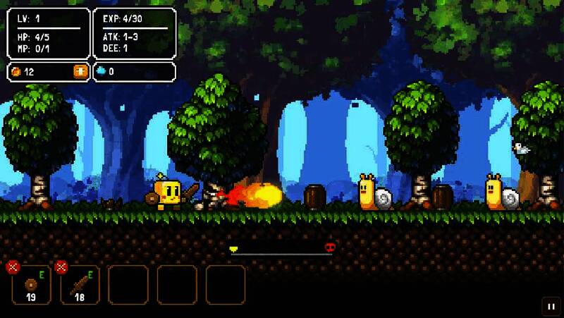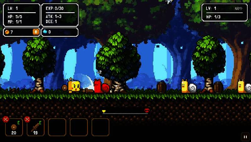 2、每次开始关卡时,角色都会从头开始(等级保留)初始玩家会带有木剑、木盾和一小桶泡面;