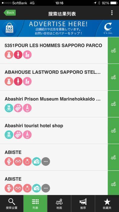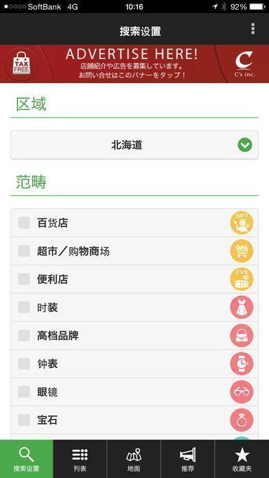 2、具备四种语言的应对能力,拥有22项分类,汇集了众多具有各地区特色的店铺信息。