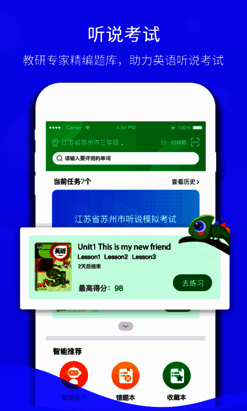 领先语音评分:驰声听说在线自主研发的试题级语音评价技术,为全国多省市高考的听力口语评分提供技术支持!
