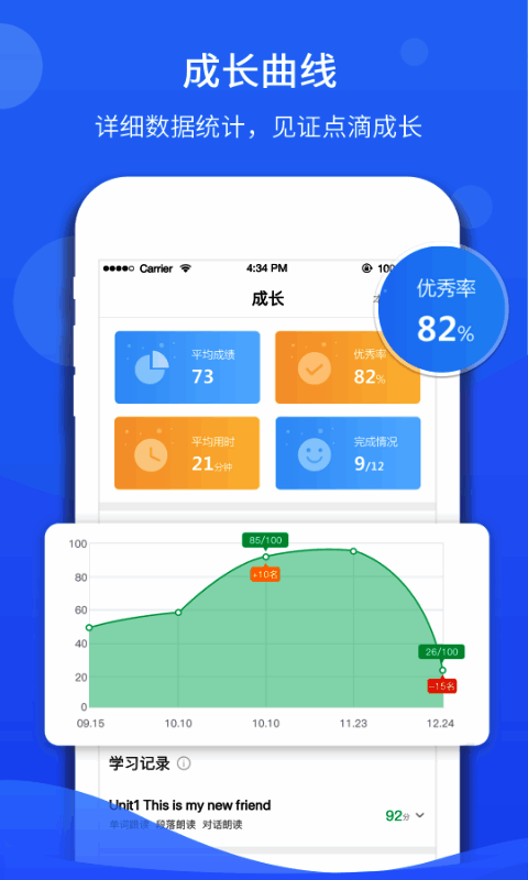 “智能评分一对一教学”:实时智能评分,比私立教育更专注。