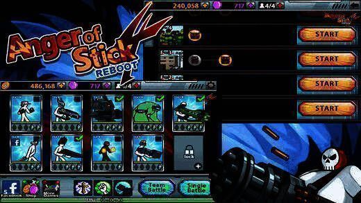 4、游戏伊始,玩家可从九个不同的火柴人角色中挑选开始战斗,有单人闯关和团队战斗两种模式供选择,丰富的角色能带来目不暇接的视觉体验。