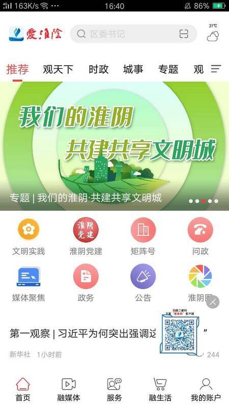 3、整合淮阴新闻媒体资源,提供教育、医疗、金融、政务、娱乐等信息资源。