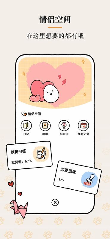 1.情侣任务:提供各类有趣的情侣任务,增进彼此感情,让爱情更甜蜜。