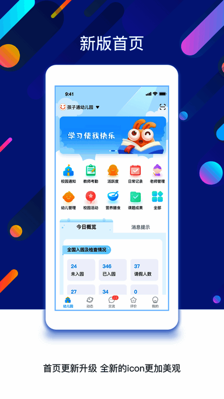 孩子通园所端这款软件主打学习教育为核心,主要就是围绕幼儿园日常管理和儿童日常生活,下载孩子通园所端app这款软件功能设定的很是强大,更有超多丰富的功能供你自由了解,需要的伙伴们不要错过,请点击下载吧!