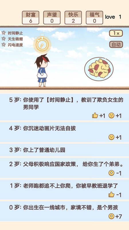 它是一款好玩的文字人生游戏,从出生到死亡,你可以为自己做出不同的选择,而且每一个选择都会给你带来不同的结局,去改变你的人生道路,让你体验到游戏的魅力。
