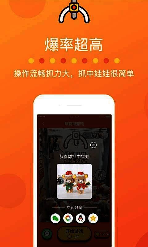 2、超高爆率,成就抓娃娃大神:抓中几率超高,轻松成为朋友圈抓娃娃人气王。