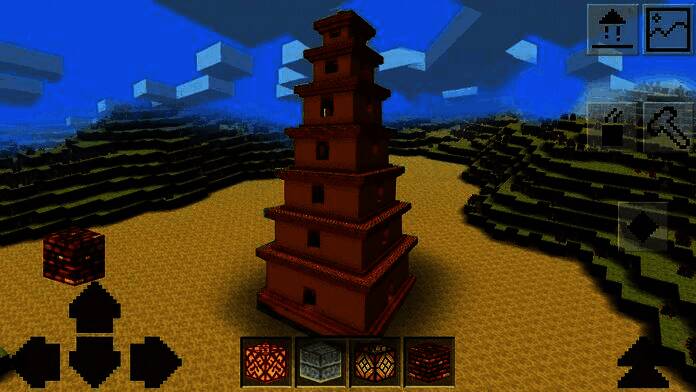 《掌上建造世界》是一款沙盒建造游戏,采用第一人称视角,拥有像素级风格,和“某某的世界”类似。其基本操作是左边控制方向,右边进行建造,中间可获取资源。