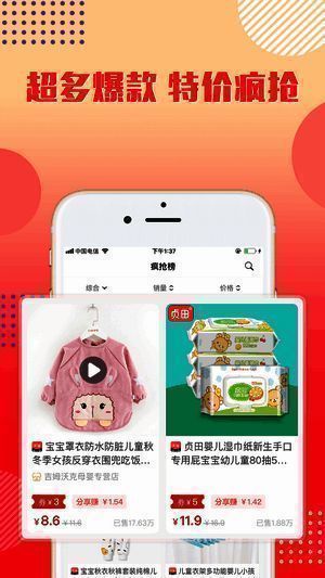 3、分享购物还能赚钱,好友通过你的分享购物后,你能获得返利。