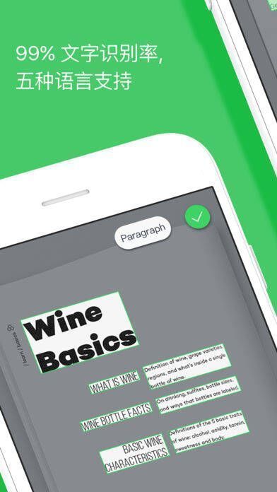 3、文字识别:文字智能识别引擎识别准确率高达99%,目前支持英语、汉语、西班牙语、法语和德语5种语言。