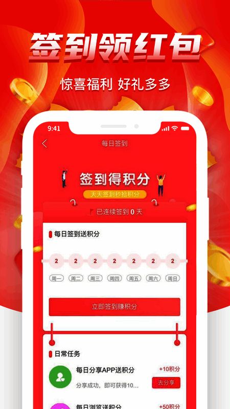 2、用户可通过每日坚持签到领取抵扣红包,下单时就能使用。