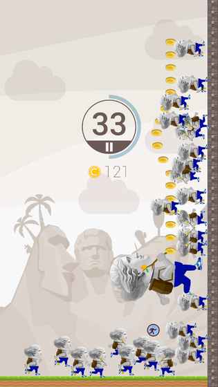 游戏主角是个身着西装的面瘫雕像男,他会一直在屏幕上绕圈跑。