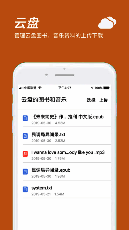 2. 支持口袋阅助手云盘管理功能,便于用户将云盘中的图书和音乐下载到本地设备。