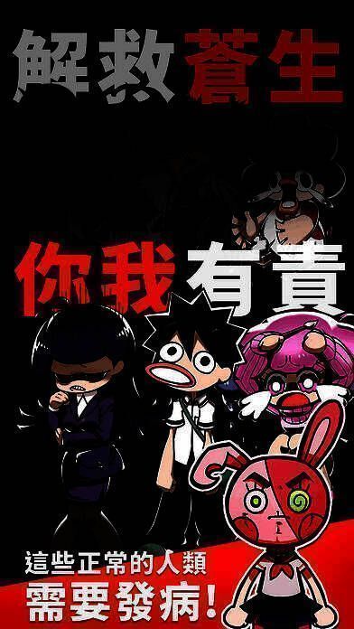 现实世界太过正常,人们内心被腐蚀,“希望”被丢弃。如今有病神自在天降临拯救大家,我们要把有病真谛传播出去,拯救被正常世界荼毒之人。