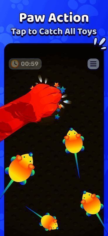 这是一款独具特色的手机游戏,玩家通过点击屏幕上的小动物来抓捕可爱的猫咪,带来全新的互动体验。