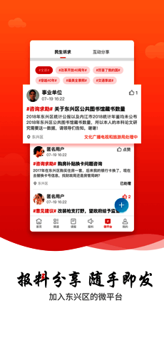 3、加入东兴微平台,随时分享爆料,轻松发布。