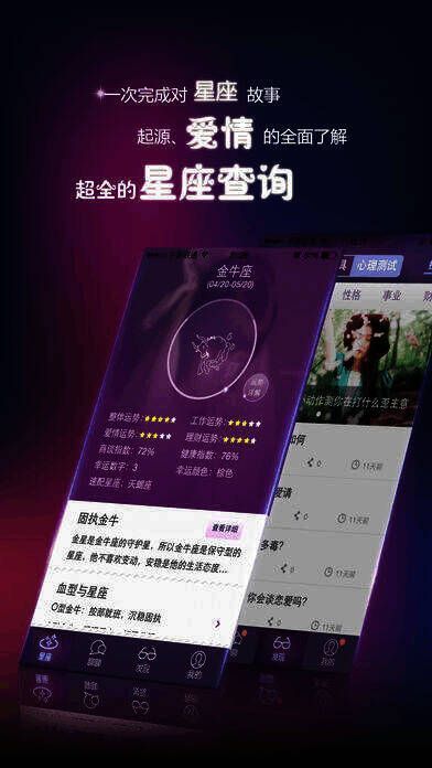 对星座特点、故事、起源,男女星座、爱情,血型与星座,神婆说星座,星座真心话等进行全方位解读,让你知晓星座所代表和预示的意义。