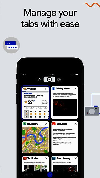 1.高效搜索:Chrome浏览器iOS版内置谷歌搜索引擎,用户能直接在地址栏输入关键词搜索,迅速获取所需信息。而且,Chrome支持即搜即得的个性化搜索结果,让网页浏览更便捷。