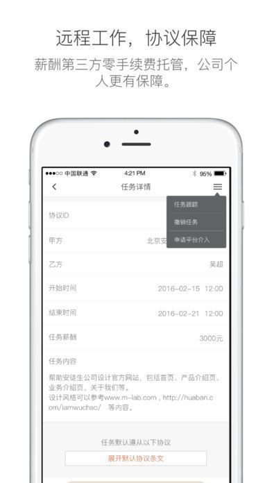 4、是从招聘到结薪的一站式在线工作平台,提供高效、自由的服务。