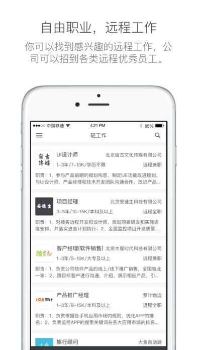 3、适合自由职业者,能帮你找到心仪的远程工作;