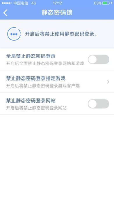 软件特色丰富:一键登录,告别密码遗忘困扰;二维码登录,一扫即登超便捷;动态码登录,60 秒一变,给予银行级安全保障;安全通知,账号消费、登录、异常情况尽在掌握;更多保护措施,如账号锁、游戏锁、消费锁、一键改密,让账号安全无忧。