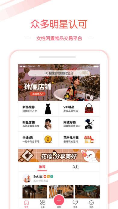 1、众多明星、时尚红人都信赖的闲置转让、交易平台,她们都在花粉儿开了店铺;