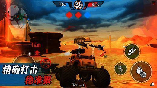 当人类文明消逝,领地争夺成了唯一的信仰,你的战车便是你最后的武器,像猎豹般飞驰吧!这是王牌战车的回归之作,末世之路战火重燃。它是一款全新的3D武装卡车在线对战游戏,你能和来自全球的热血亡命之徒并肩作战,与疯狂的侵略者激烈厮杀,这里有你渴望的速度与激情,也有你值得守护的光荣与梦想。
