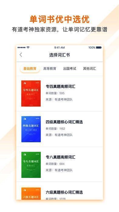 有道考神和新东方团队提供正版权威词库,朗文当代高级英语辞典给出权威的单词释义和例句,还有新东方团队的真题支持,为单词质量提供坚实保障。四六级、托福、雅思等各类单词书一应俱全。