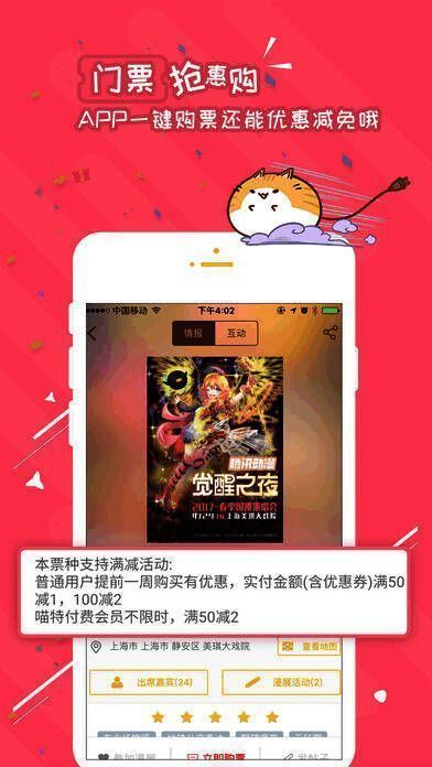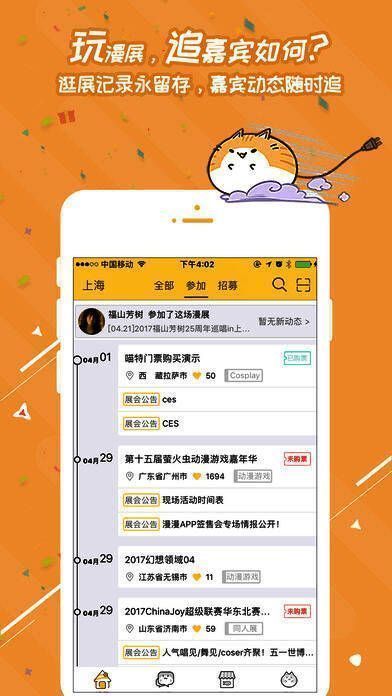 【漫展签到】到达展会现场点击签到,通过app定位验证获喵粮奖励,喵特app购票者奖励翻倍。