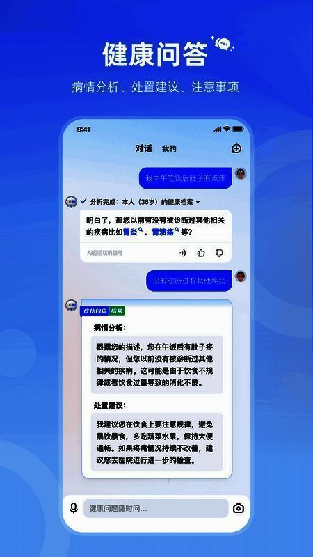讯飞晓医APP不仅提供医学健康知识查询与问答服务,还涵盖健康自查、报告解读、中医保健、健康档案管理等多项功能,为用户提供全面的健康管理支持。