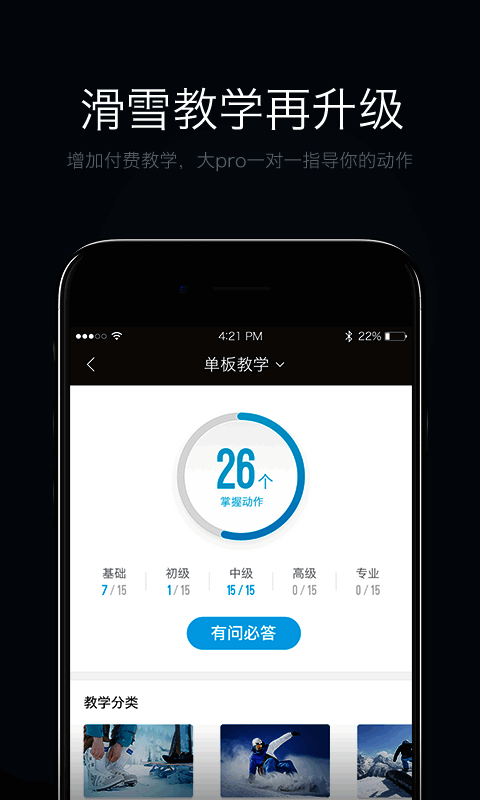 1、教学首页全面改版,为每个人打造专属的滑雪私教体验。