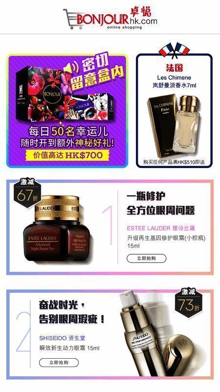 bonjourhk最新版是一款美妆购物软件,对于当下很多男女来说,美妆产品不可或缺,它为大家提供了丰富优质的美妆产品。