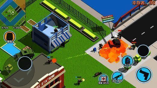 该游戏出自《汽车大逃杀》制作团队,在手机大逃杀模式游戏开发方面经验丰富。游戏里开车载人开枪等操作都能实现,堪称手机上最好玩的大逃杀游戏。其视角针对手机做了优化,不会让你头晕,简单易上手的操作,男女老少都能轻松“吃鸡”,带女朋友一起在手机上玩效果更佳。玩家将操控像素角色射击作战,击杀像素敌人,杀得越多得分越高。