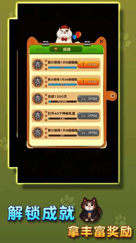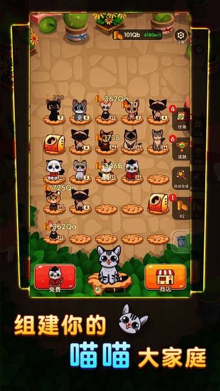 逐步完成任务,通过各种活动考验,为猫咪打造华丽小屋。