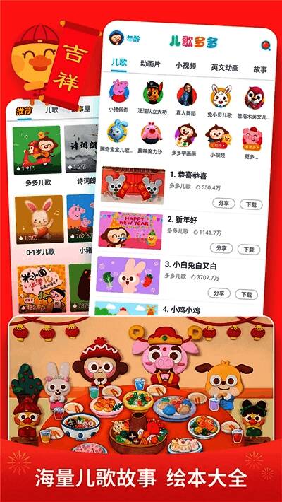 儿歌多多苹果版是当下备受欢迎的儿童启蒙教育软件。它汇聚海量儿童歌曲、睡前故事和学前教育内容,助力孩子全面发展,实现寓教于乐,让孩子拥有健康快乐的童年。
