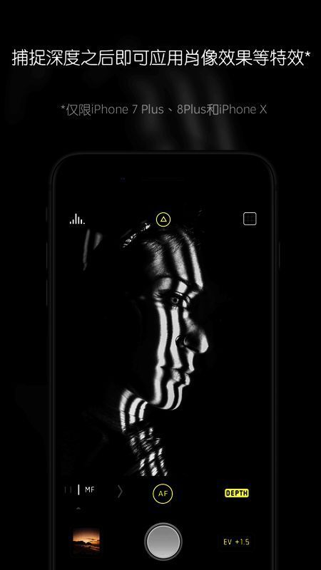3、对于前置摄像头,Halide相机可利用iPhone X的真深度相机识别被摄对象,并在人脸外添加模糊效果。