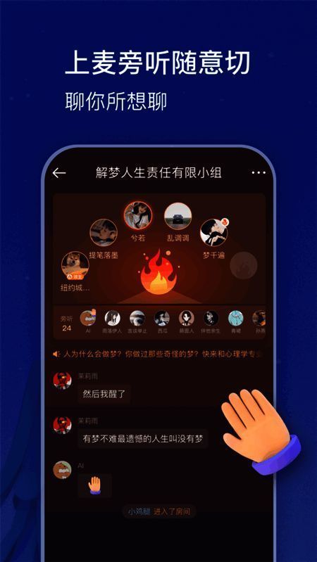 1、它是一个能让你与朋友及世界各地有趣之人随时进行音频对话的空间,互动轻松便捷。