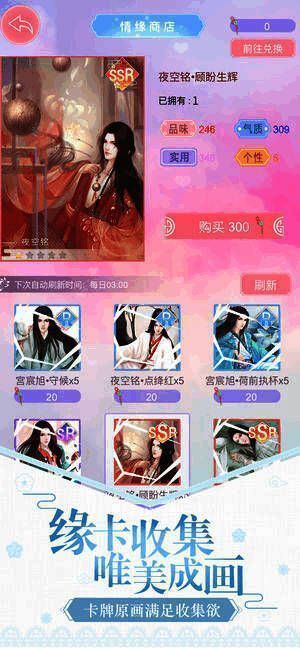 6、拥有新颖的卡片收集玩法,可与女主角月下漫步,感受惬意生活。