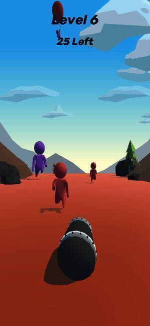 不同颜色小人在前方奔跑,玩家需射击它们,采用简单的机械点触射击方式,不同关卡难度不同。