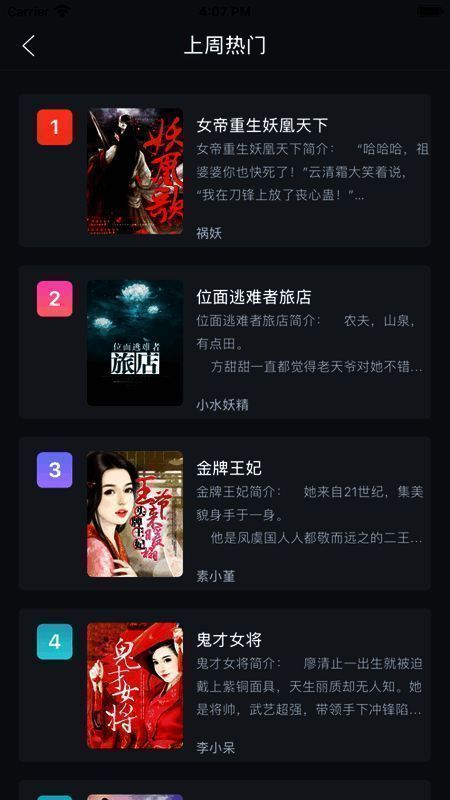3、有男女榜单,包含完结榜、新书榜、人气榜,轻松发现热门内容。