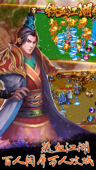 《铁血江湖》是一款传承经典的怀旧武侠RPG游戏。玩家可投身热血江湖,感受百人同屏、万人攻城的全民竞技快感,还有诸多特色玩法。
