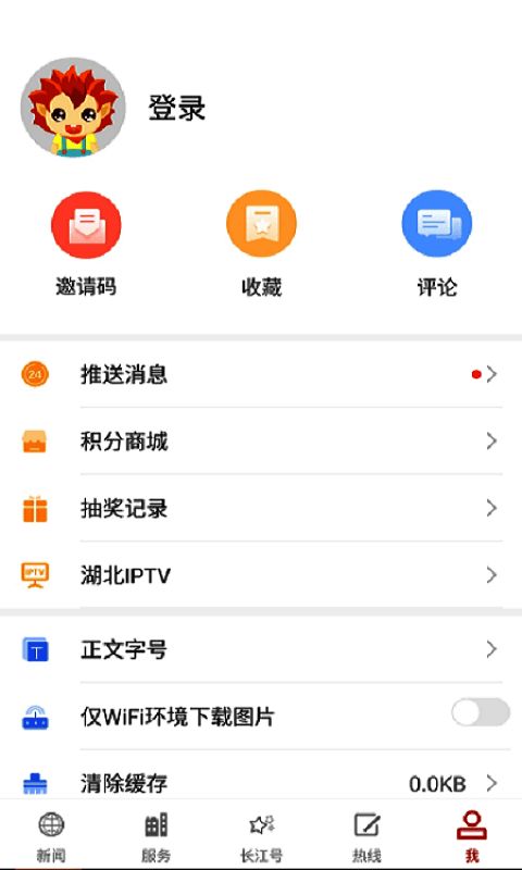 打开下载的长江云软件并登录账号;查看新闻资讯,了解当地动态;可添加喜欢的频道并阅读内容;提供多种服务功能供用户选择;用积分兑换礼品;快速添加收藏、查看评论;清除缓存文件、更改软件字号;用二维码邀请好友使用。