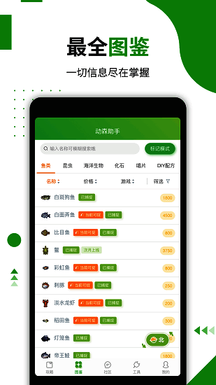 1. 全面的图鉴系统:其图鉴系统是一大亮点,收录游戏各类元素,如鱼类、昆虫、化石、贝类、DIY配方、唱片、植物、艺术品等,支持多条件筛选与拥有状态标记,方便玩家查阅信息、定位目标元素。