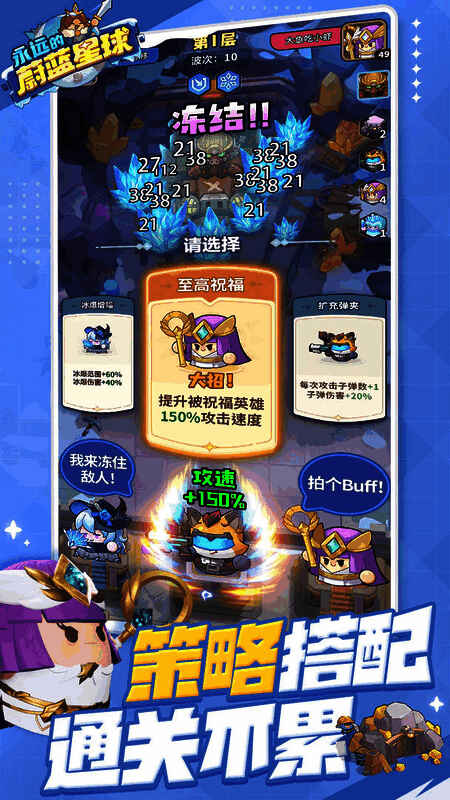 永远的蔚蓝星球官方版游戏独具特色,它带来英雄 2 合 1 以及局内 3 重随机玩法,有随机召唤英雄、随机组合技能、随机合成进化的乐趣。3 分钟一局,每局超 100 种策略组合,呈现传统塔防的趣味。玩家靠运气培养 buff,无论休闲党还是策略党都能 3 秒上手,可疯狂推一百关。游戏有竖排 q 萌画面与华丽战斗特效,带来爽快割草感。
