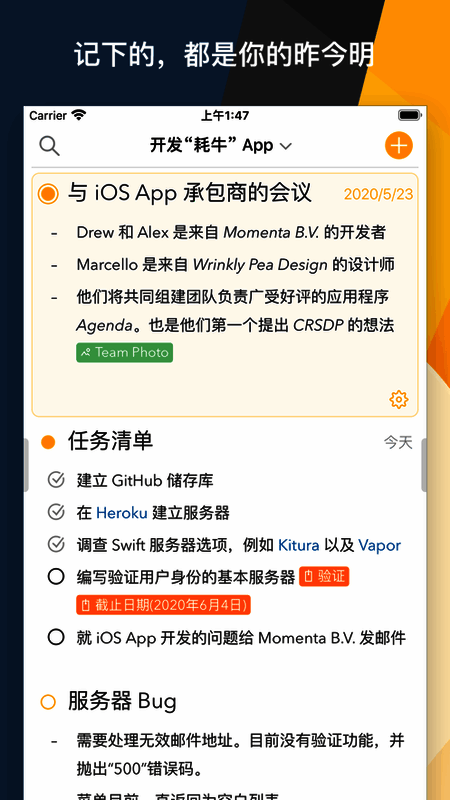 Agenda APP功能全面,能轻松保存工作安排、行程、会议等重要内容,除文字外还可快速上传图片。记录信息按时间排列,方便查找和修改。