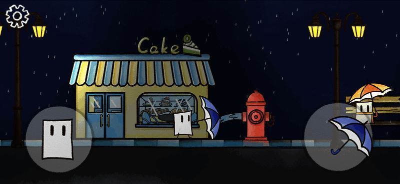 启动游戏后,伴随着淅淅沥沥的雨声,玩家将正式进入这个充满诗意的世界。左下角的虚拟摇杆用于控制角色移动,右下角则用来调节雨伞的高度。当出现黄色对话气泡时,点击即可查看任务提示或剧情内容。