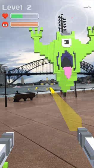 《鬼和枪 AR》是近期在抖音爆火的虚拟现实小游戏。玩家可在房间任意位置放置恶魔传送门,会有各种 Q 萌怪物从中涌出,使用双枪将它们击败,是款很棒的现实交互游戏。