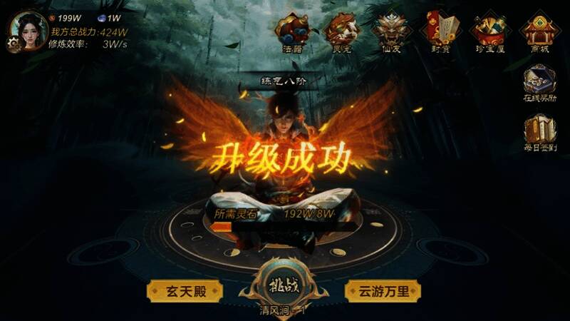 2. 设有多种挂机模式,可在挂机中获取经验与资源。